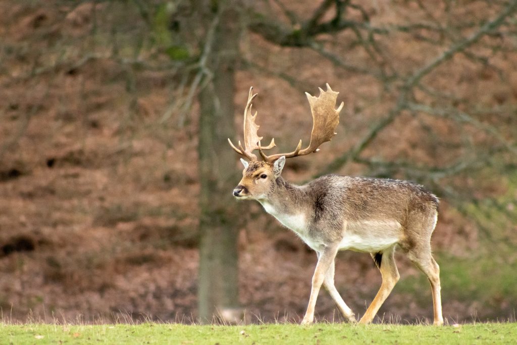 Luckily for me, many of the deer like to stay near the house too. They are not afraid of coming quite close to visitors, but in the end the photo I was most pleased with was from a long distance away. I liked how the leaf-fall on the gentle hill opposite provided a natural backdrop to the stag, making him stand out on what was a rather overcast afternoon.
