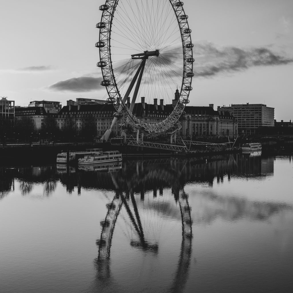 London is a wonderful place to live, but every once in a while I wish it was just a little bit quieter. For just a few hours, once a year, London stands still and you can explore the city as it would be if all the people had disappeared. Just around dawn on Christmas morning there are no buses, no cars, and the only other people around are out taking photos of abandoned streets. Fortunately it was a mild morning with a clear sky and, by the time I got to the Thames, a lovely orange sunrise.